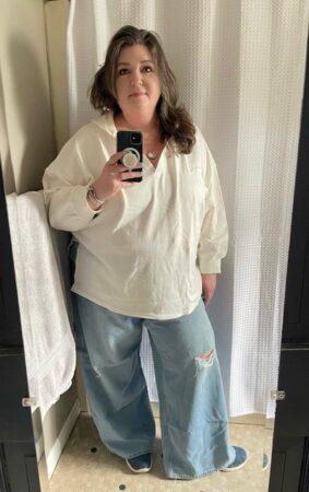 A full body selfie from Saturday morning. Posting this is a giant step forward for my body neutrality work. Also, apparently I don’t know where to look when I’m taking a mirror selfie.
